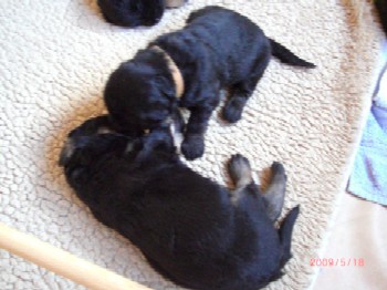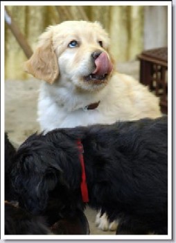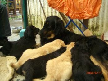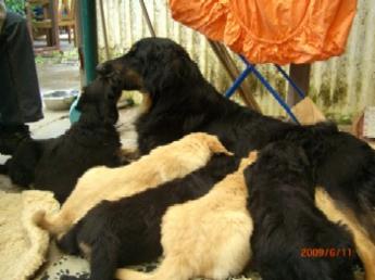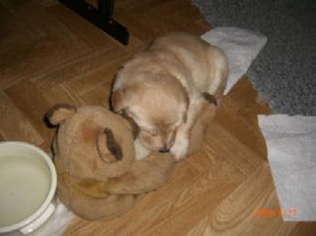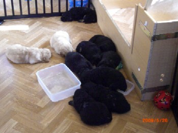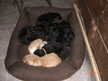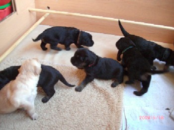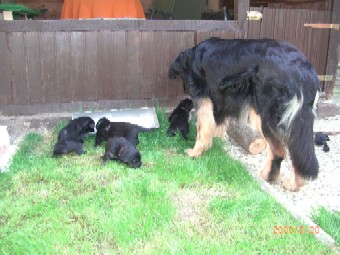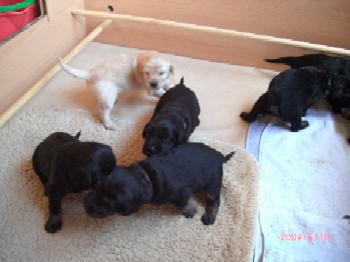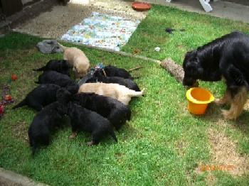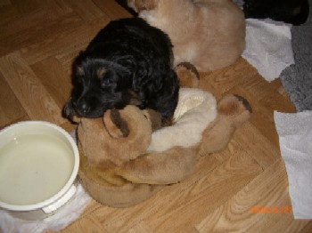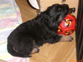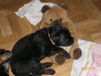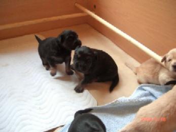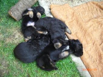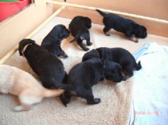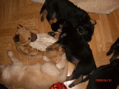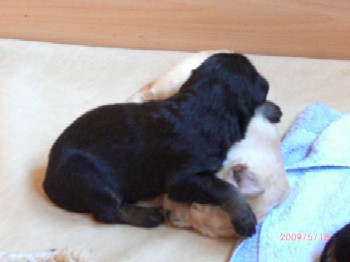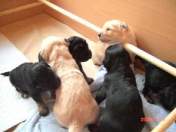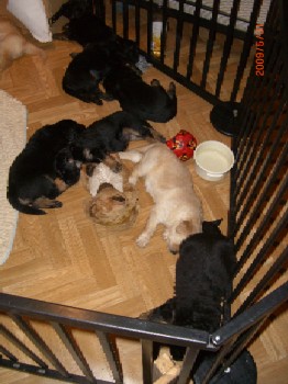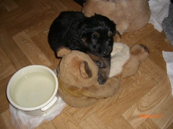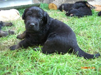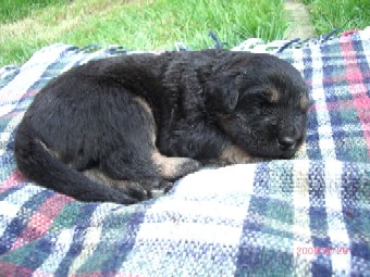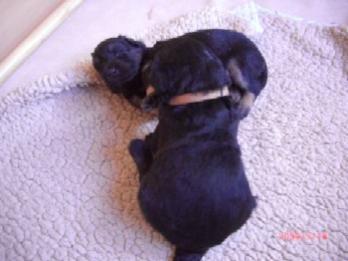 Ja, und jetzt noch mein Aragon!! Mein Letztgeborener ist der Größte und Schwerste! Heute hat er schon 2350 Gramm gewogen. Gut, er ist häufig hungrig, aber er hat immer ein lachendes Gesicht dabei. Na ja, da schmilzt schon mein Mutterherz wenn er so schwanzwedelnd auf uns zukommt! Er ist einfach ein freundliches aber auch sehr cleveres Kerlchen! Na ja, sie sind alle zum Knuddeln, geb ich ja zu. Jeder von meinen Kleinen hat etwas besonderes und ist eine kleine Persönlichkeit. Also ich will ja nicht protzen und Eigenlob stinkt ja auch, aber bei den Eltern.............