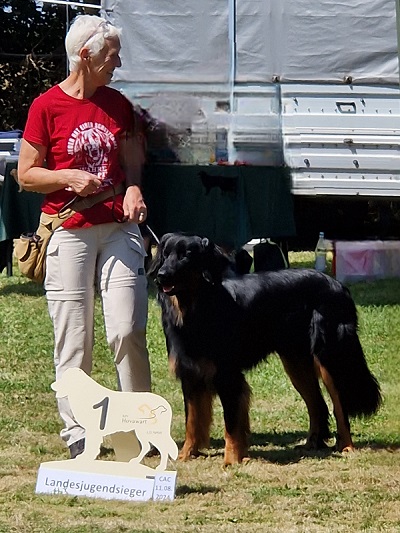 Debbie hat in der offnen Klasse der Hündinnen ein V1 bekommen und ist schönste Hündin geworden (ihre erste Schau!!!), Dunja hat neben ihrer Schwester das V2 erhalten!!