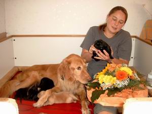 Michaele Schwenz, die Besitzerin von Baumann, dem Großvater der Welpen